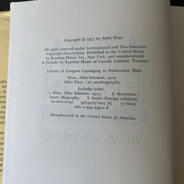 Vintage: Abba Eban, An Autobiography by Abba Eban 1977, Hardcover