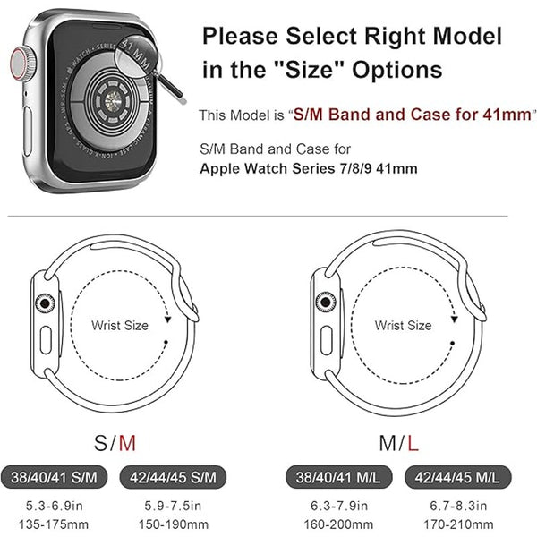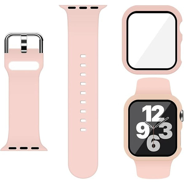 Sport Silicone Band and Case with Screen Protector for Apple Watch Series 9, 8, 7, 6, SE, 5, 4