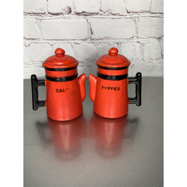 Vintage Red Coffee Pot Kettle Ceramic Salt & Pepper Shakers Japan