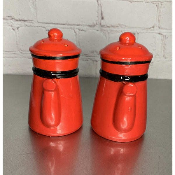 Vintage Red Coffee/Tea Pot Salt & Pepper Shakers Ceramic